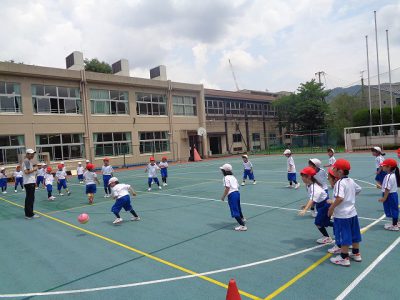 みんなでルールを確認して、赤組と白組に分かれて試合をしました。