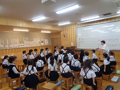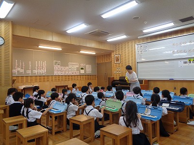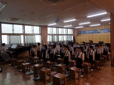 音楽の授業が終わった後も、合唱曲を楽しそうに口ずさんでいる1年生。