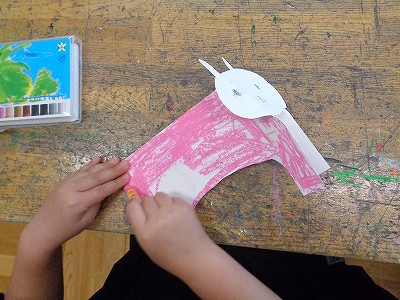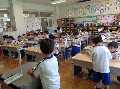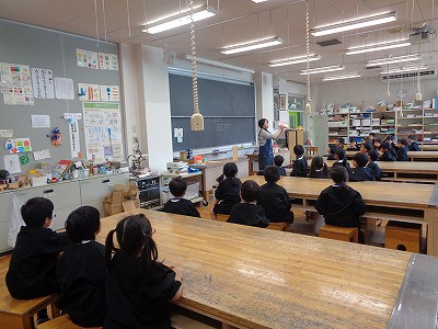 かざり係さんたちが、前の書画カメラに映したり、みんなの席を回ったりしながら折り方を教えてくれました。