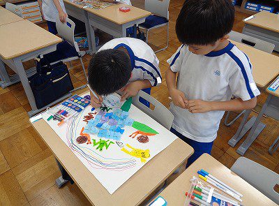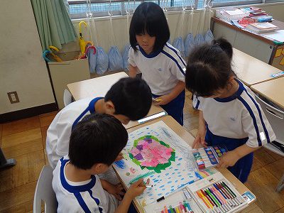 かざり係さんは、6月をイメージした絵を楽しく仕上げています。