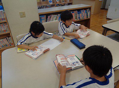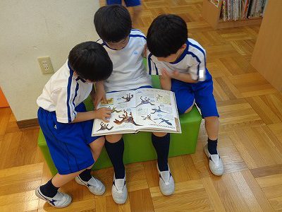 図書室では、お気に入りの本をお友達と一緒に読んでいます。