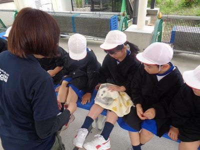 なかよし教室では、テンジクネズミとウサギと触れ合うひとときを体験しました。