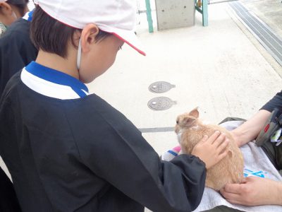 そして、ウサギとも触れ合い、またまた「かわいい!」と感激している姿が多く見られました。