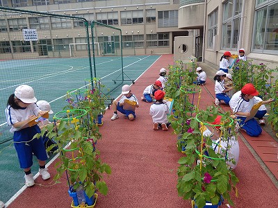 今日は、生活科の時間に「つぼみ」と「お花」の観察をしました。