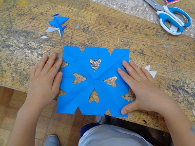 くり抜いて切ったり、切り込みを入れたりしながら、工夫して切って開いてみると・・・