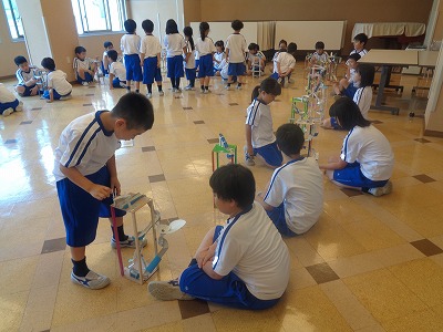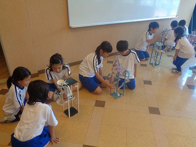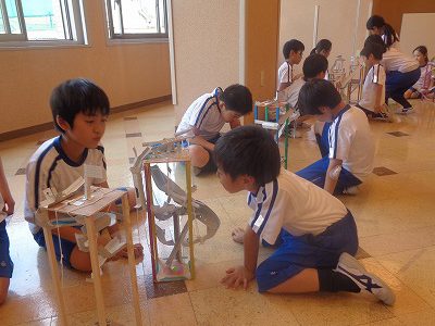 今日は、5年生が図工の時間に作った「ビー玉コースター」で遊ばせてもらいました。