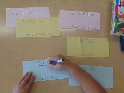今日は、特にがんばりたいお手伝いを考え、「お手伝いチケット」を作りました。