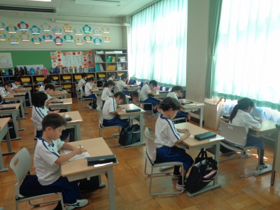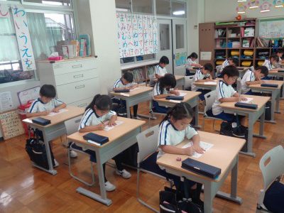 「シ」と「ツ」、「ソ」と「ン」、「ア」と「マ」など、似ていてまぎらわしい字に気をつけながら、丁寧に正しく書けるように継続して漢字小テストを行います。
