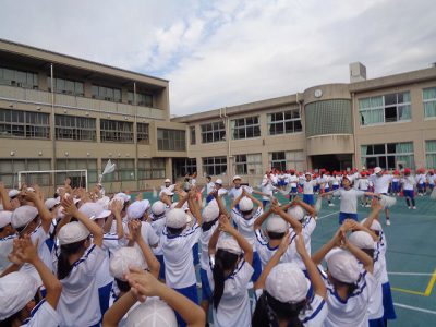 応援練習では、応援団のお兄さん、お姉さんの動きを見ながら練習しました。
