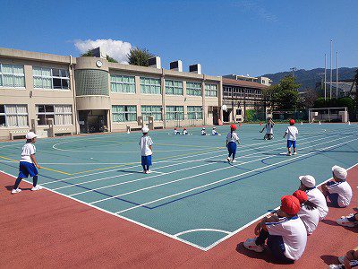 低学年演技の練習をした後、徒競走の練習をしました。