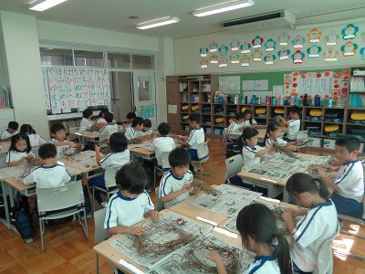 「お花の数調べ」や「色水遊び」「種取り」などにも意欲的に取り組み、今日のリース作りまで楽しく学習を進めることができました。