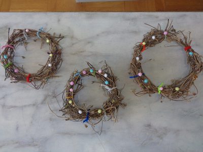 完成したすてきなリースは、校内に飾った後、お家に持ち帰る予定です。
