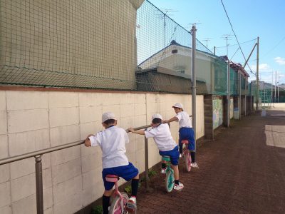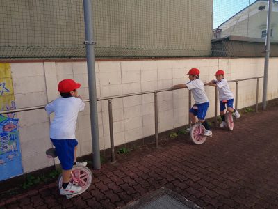 一輪車は、手すりを持ちながら、バランスを保ってどんどん進めるようになってきました。