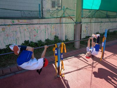 次に、今日は、ベルトを使って「逆上がり」に挑戦しました。