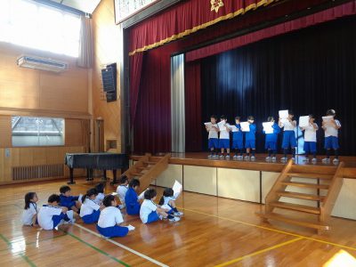 大きな声ではっきりとセリフを言う姿、目線や動きを工夫して話す姿、迷っているお友達にやさしく声をかけている姿など、今日もたくさんのがんばりが見られました。