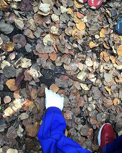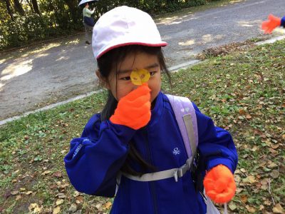真っ黄色のイチョウの葉や細長い松ぼっくりを見つけ、知らせてくれました。