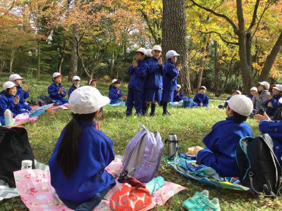 日直さんの合図で、いつもの通りの「食前のことば」を唱え、おいしいおいしいお弁当を食べました。後半の活動に向け、しっかりとエネチャージができました。