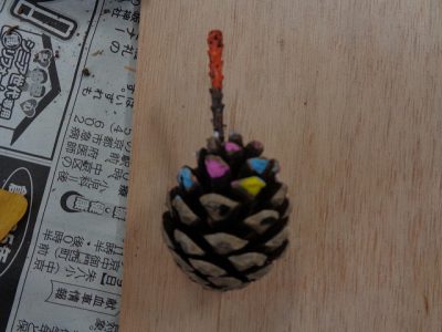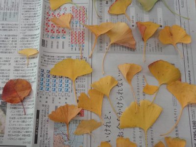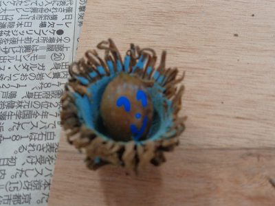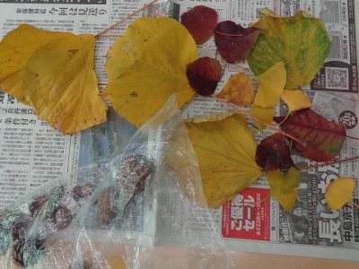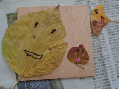 落ち葉や木の実の色や形、手触りを楽しみながら、作品を仕上げました。