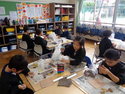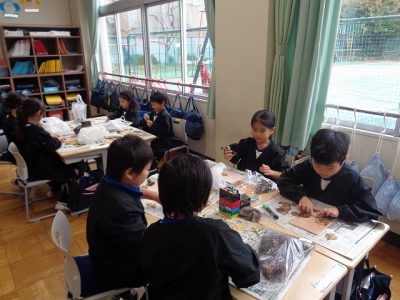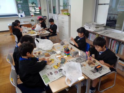 今日作った作品は、1年生の靴箱の上に飾った後、お家に持ち帰る予定です。