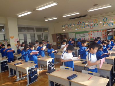みんなで声をそろえて、声の調子に変化をつけて読むことをめあてに音読しました。