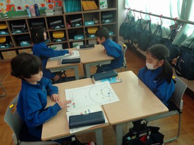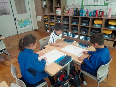 「10点のところに4個、1点のところに5個入ったので、45点です。」というふうに、ゲームの結果を説明しながら得点を出しました。