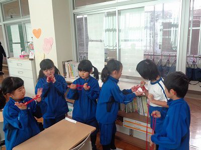 生活科の時間をきっかけに、休み時間に「あやとり遊び」をする姿が増えています。