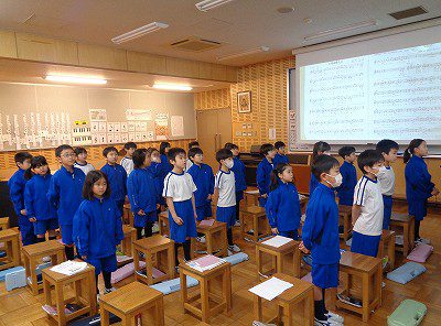 音楽室に入ると、歌詞に込められているメッセージを大切にしながら、やさしい声で練習していました。