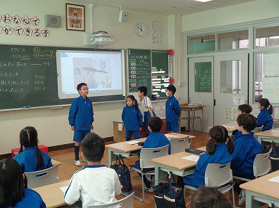 鑑賞会に向けて、自分の作品について工夫したところを、みんなに発表しました。