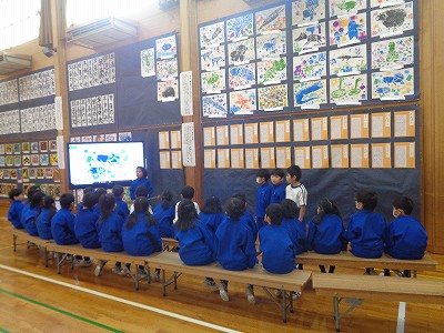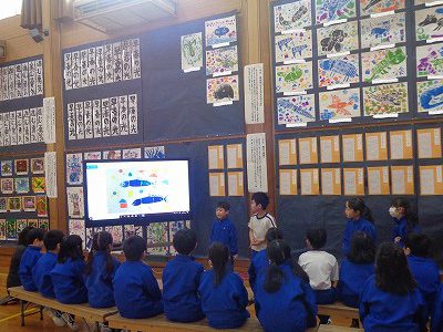 全学年の作品が展示されていて、いつもとちがう体育館の様子に少し驚きながら、体育館に入りました。