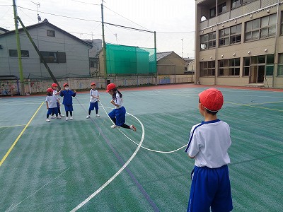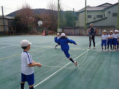 左右にゆれている縄をよく見て跳んでいます。跳ぶタイミングを体感してきたようです。