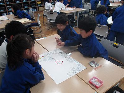 昼休みの前半に、かざり・工作係さんが、みんなで「切り紙」を作ろうと呼びかけてくれました。