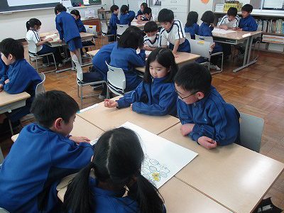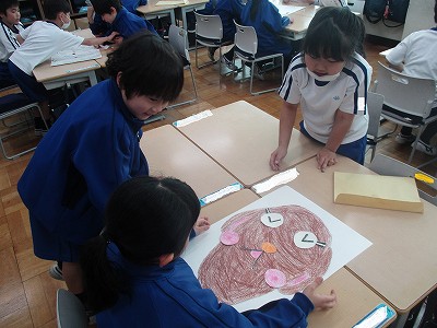 一人ひとりが作ったものを貼り合わせて、すてきな作品ができました!