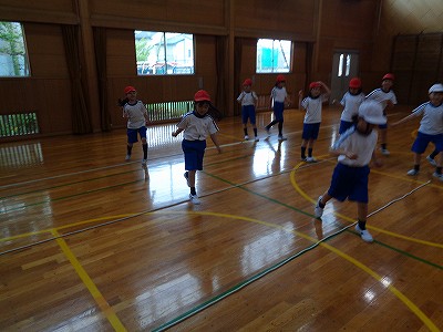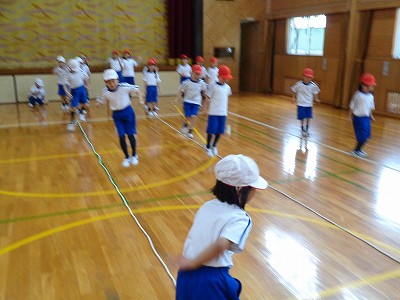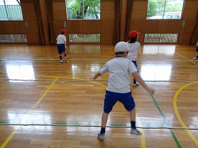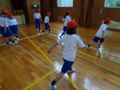 みんな汗びっしょりになりながら、音楽に合わせて、リズムよく元気に活動できました。
