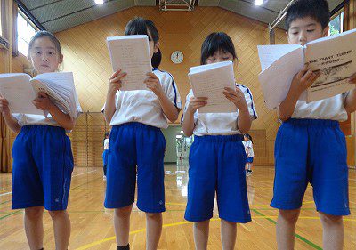 今日はグループに分かれ、「セリフの確認・動きの付け方・英語の発音」を目標にして取り組みました。