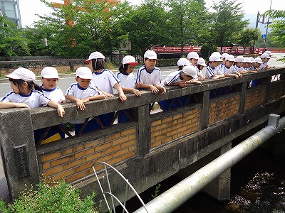 各ポイントで、子ども達に気付きを聞くと「緑が増えた」「生き物が多い気がする」「日傘を差している人がいた」など……、「これぞ、夏」を発見することができていました。