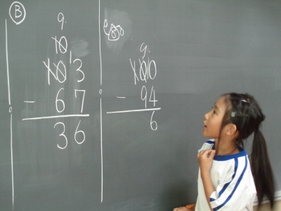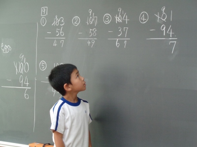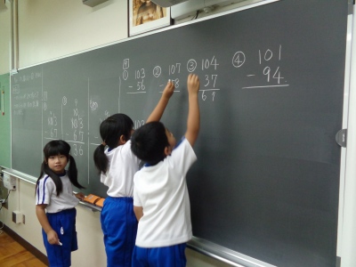 みんなで話し合い、考えた結果「百の位から1くり下げて、十の位を10と見て計算すれば良い」ことを学び、解き方を明確にすることができました。