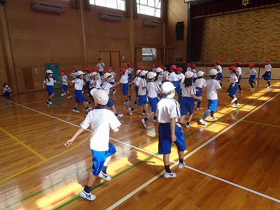 今週に入って、1年生2年生合同で運動会の練習を進めています。