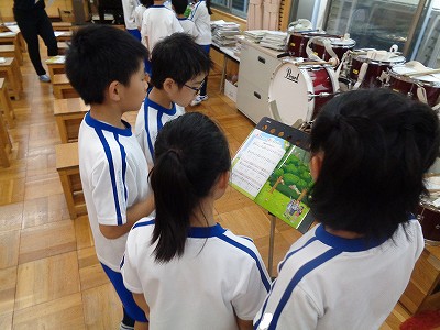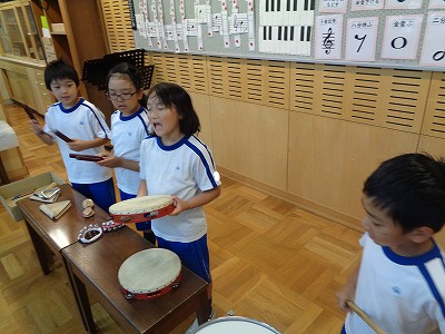 前時の学習に引き続き、歌に合わせて楽器選びからスタートしました。