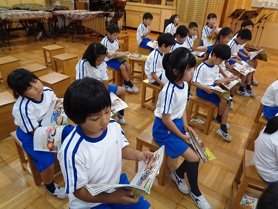 学習の前半は「♪夕やけ小やけ」や「♪まっ赤な秋」「♪北風小僧の寒太郎」などの歌を歌いました。