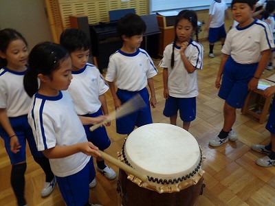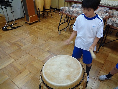 その後、各チームに分かれて、和太鼓を楽しみました。
