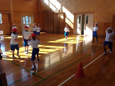 体育の学習では「ブラジル体操」と「ボール投げ運動」を行いました。