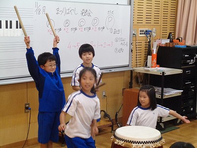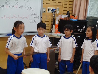今日の音楽は「祭り囃子」の発表会を行いました。
