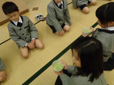2校時、礼法の学習は、帛紗さばきの復習と練習をみっちり行いました。