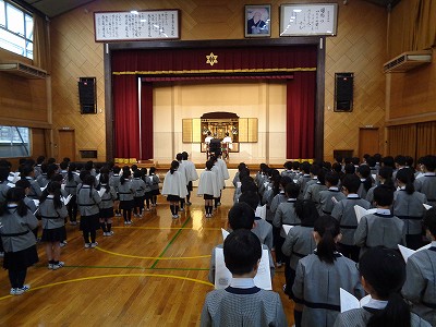 2年生は、谷川俊太郎さんの詩『生きる』を発表しました。