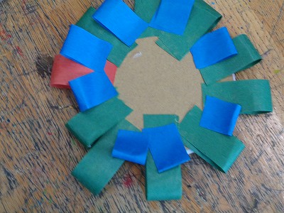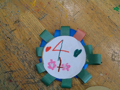 バッジのまわりは、花びらで重ねて鮮やかに。