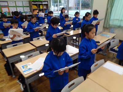 一文ずつ丁寧に読んだり、速読したりといろんな音読の仕方で練習を続けていきます。