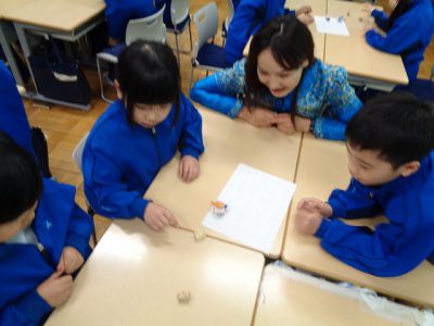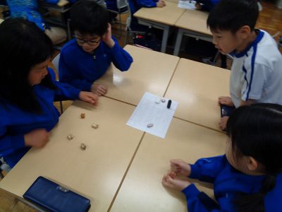 シャガイをさいころに見立てて、すごろくで遊びました。