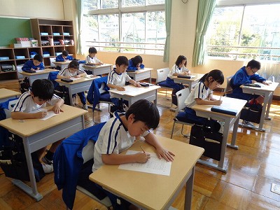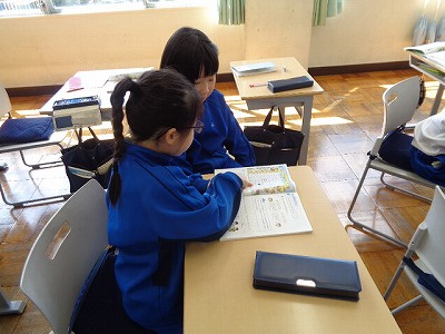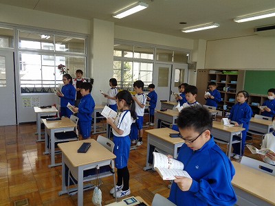 朝の会の前に、音読をしたり、朝歌を歌った3年生。