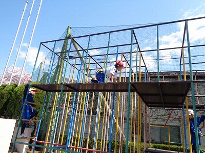体育では、3年生デビューとなるジャングルジムの3階に登って降りる練習をしました。
