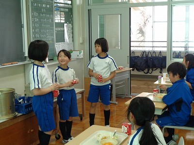 給食の時間には、係の人が今日のお誕生日の人をお祝いしました。